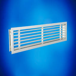 Opis Kratka wentylacyjna z pojedynczym rzędem nieruchomych kierownic typu: GLD z kierownicami poziomymi, GLI i CRAC z kierownicami pochylonymi pod kątem 15 stopni oraz GLTI z kierownicami pochylonymi pod kątem 45 stopni, wykonana z aluminium anodyzowanego na kolor naturalny.