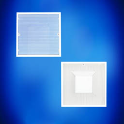 Opis Anemostat sufitowy z panelem czołowym z blachy perforowanej. 1-, 2-, 3-, 4-kierunkowy typu TPM / TPZ lub 4-kierunkowy typu TPM-FP / TPZ-FP / TP, wykonany ze stali malowanej proszkowo na kolor RAL9010.